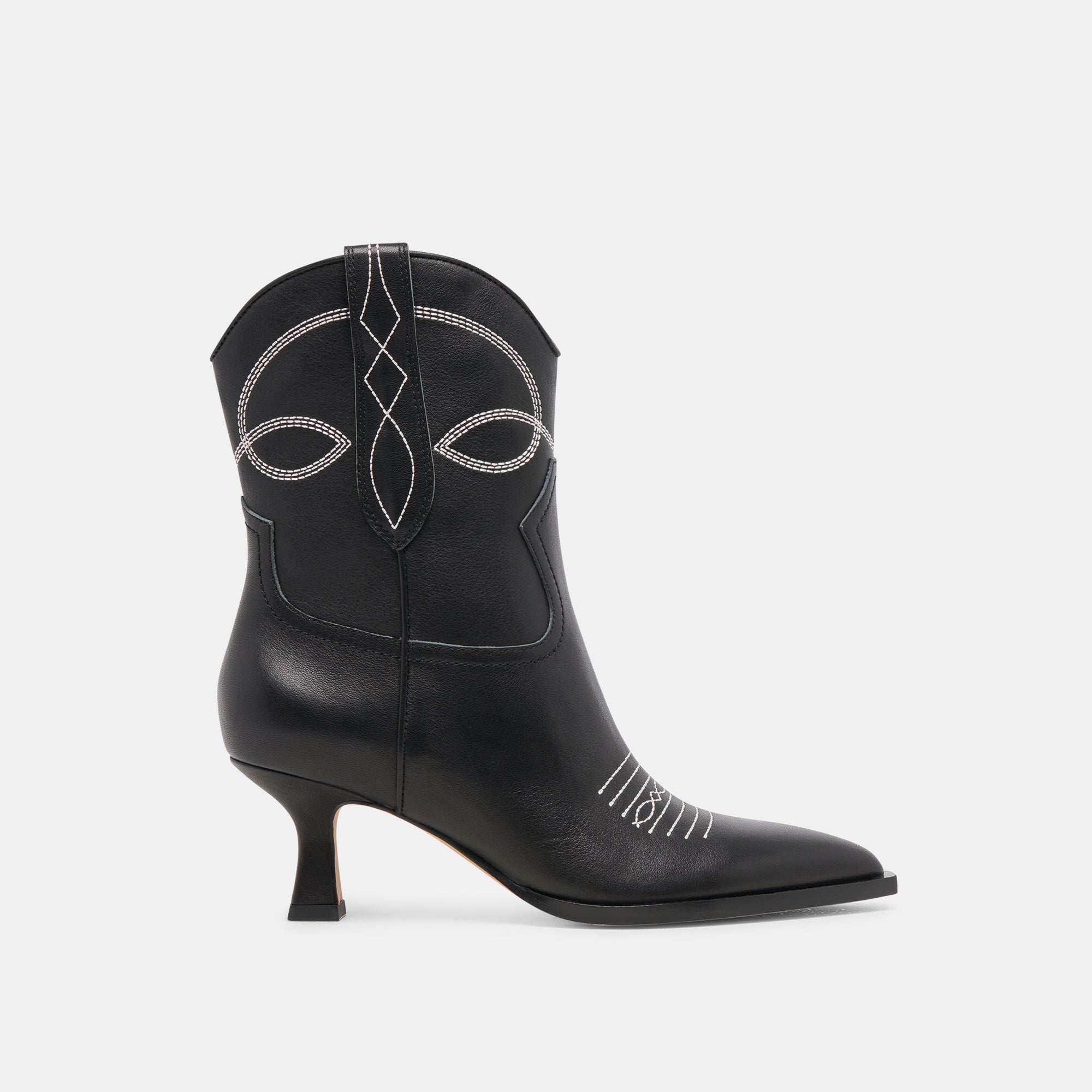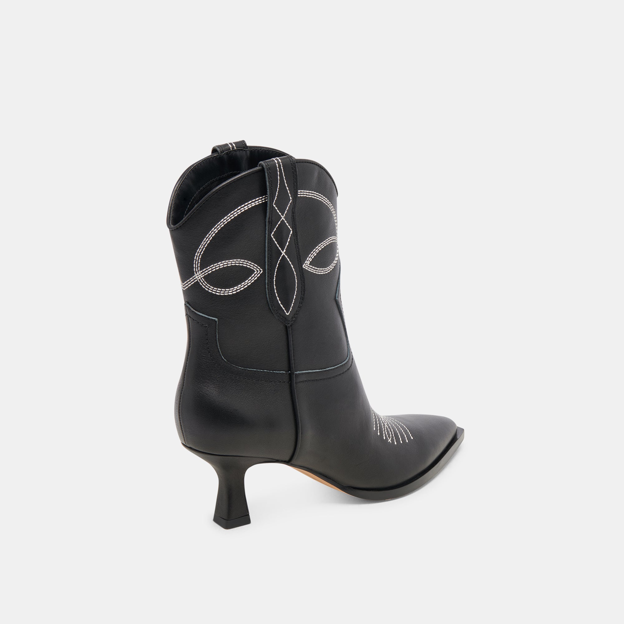 ANGEL is western with a modern edge. Unmistakable stitching, pull tabs, and a pointed toe are contrasted with a sculptural kitten heel. Crafted with sustainable materials, this mid-calf boot comes in an array of statement and neutral colorways.