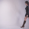 Add some height in HUDSIN. Crafted with sustainable materials, this suede knee-high boot elevates your cold weather dresses with a substantial heel and an ultra-sophisticated silhouette.