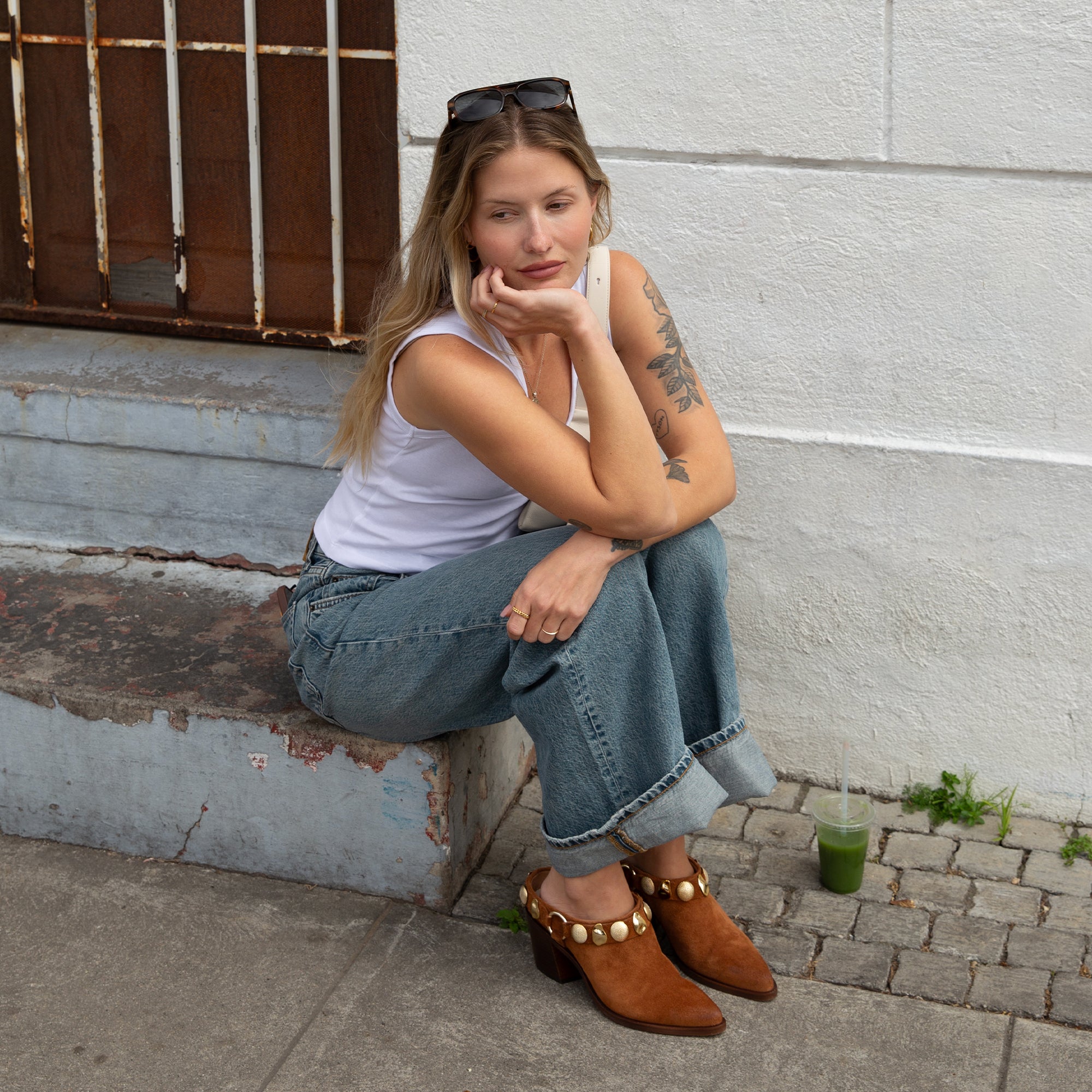 They won’t see KANYON’s bootie-meets-mule silhouette coming. Western-inspired design meets gold metal details for a unique and chic addition to your flowy skirts and denim.