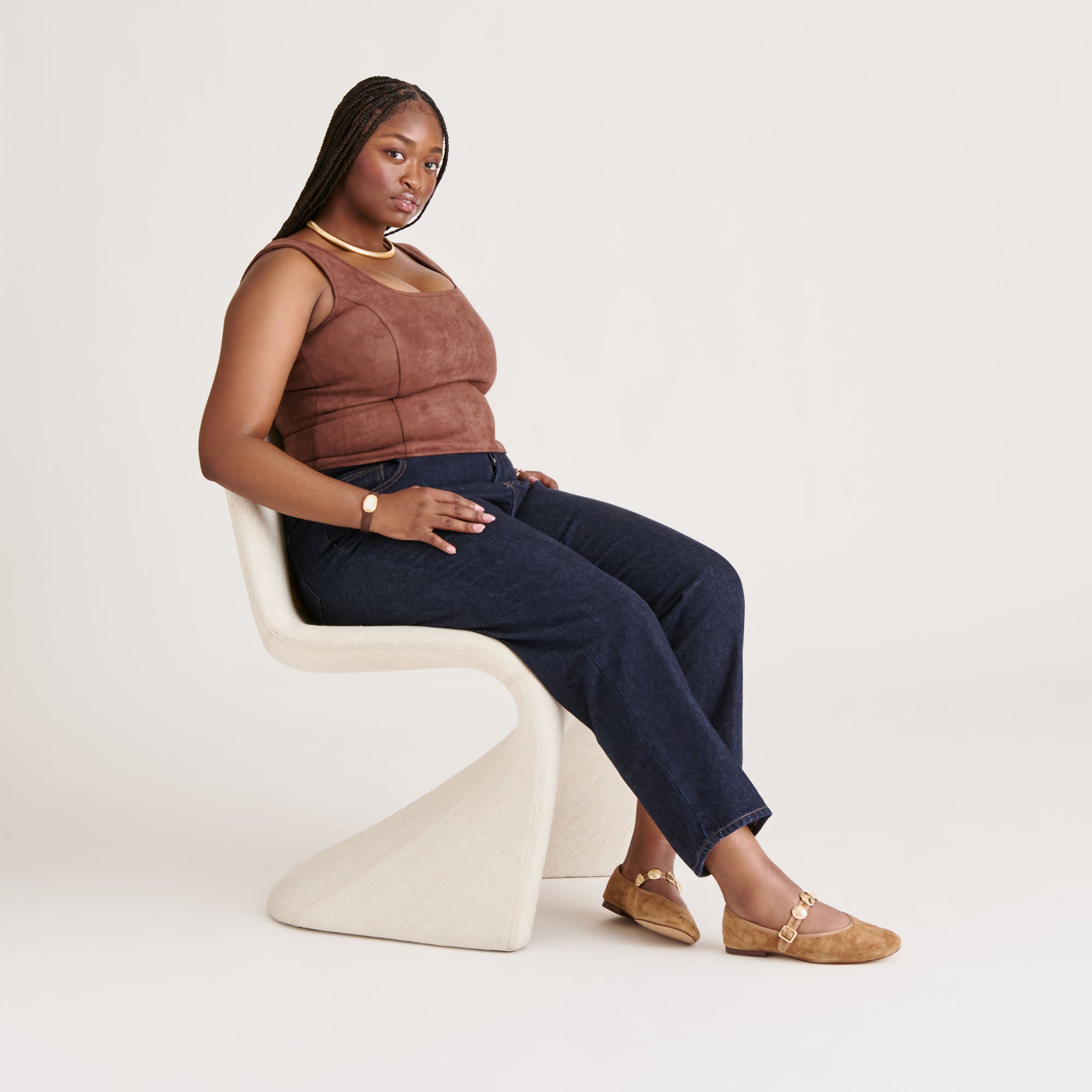 RELAN’s comfortable yet elevated design is made fresh by bold colorways and textures for fall. This sustainably-crafted, round-toe ballet flat features light-catching gold accents along the strap. She’s perfectly sophisticated for the office or casual weekends out.