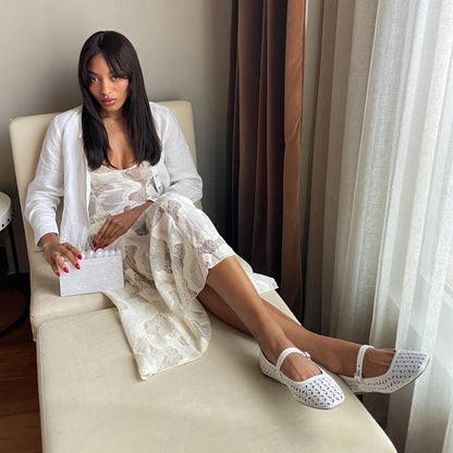 RODNI EYELET PERF BALLET FLATS TRUE WHITE LEATHER