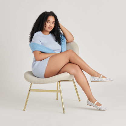 All in the intricate details, RODNI EYELET PERF is a mary jane flat with textured flair. Breathable and ready for the warmer months, pair this sustainably crafted style with jeans or a flowy skirt.