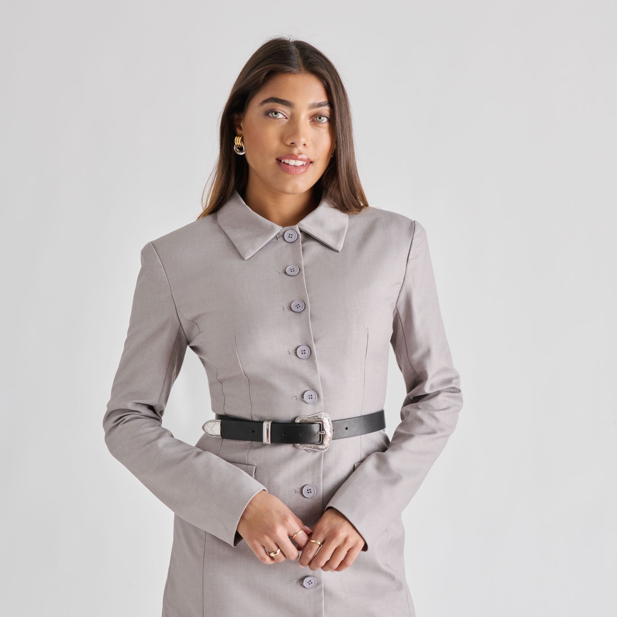 The final essential accessory for completing a timeless yet trendy western-inspired outfit—a classic western belt. Add a hint of western boho style with this black leather belt and its trio of glimmering silver hardware. Featuring traditional western etchings, luxe leather is topped with that quintessential ranch-ready belt buckle, a sleek silver keeper, and an edgy capped tip. With your favorite western-inspired boots, all-denim ensemble, and 10-gallon hat, this belt is suited for the saddle or festivals. For just a splash of western edge, pair this belt with cowhide loafers, a tee-shirt, and barrel jeans.